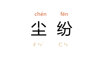 引南朝 宋 颜延之 《夏夜呈从兄散骑车长沙》诗:“炎天方埃鬱,暑晏闋尘纷。”宋 朱熹 《寄题咸清精舍清晖堂》诗:“珍重忘言子,高唱絶尘纷。”