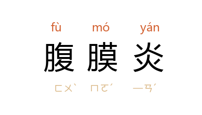 ⒈ 病名。腹膜发炎,可分为原发性腹膜炎与续发性腹膜炎。原发性腹膜炎多由于感染肺炎双球菌和乃溶炼菌而引起的,感染后会有上气道感染症及丹毒、肺炎等并发症。续发性腹膜炎是由盲肠穿孔或腹腔内脏器官破裂而引起的。