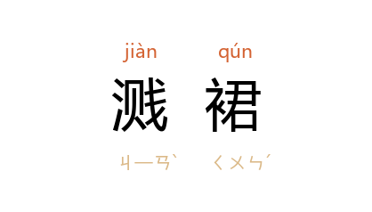 ⒈ 据《北齐书·窦泰传》载,泰母有娠,期而不产,大惧。有巫曰:“渡河湔裙,产子必易。”泰母从之,俄而生泰。后以“湔裙”、“溅裙”谓妇女有孕至水边洗裙,分娩必易。唐李商隐《拟意》诗:“濯锦桃花水,溅杜若洲。”宋高观国《玉楼》词:“十年春事十年心,怕说溅裙当日意。”一说,可度厄辟灾。参见“湔裙”、“湔裳”。