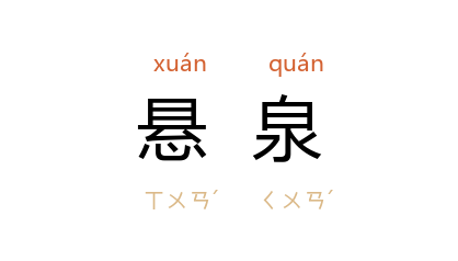 引唐 张九龄 《入庐山仰望瀑布水》诗:“絶顶有悬泉,喧喧出烟杪。”宋 梅尧臣 《寄题绛守园池》诗:“悬泉泻竇昼未停,飞玉贮蓝光入屏。”宋 郭彖 《睽车志》卷六:“峻溪急流,悬泉泻瀑,衝石走沙,声如雷动。”