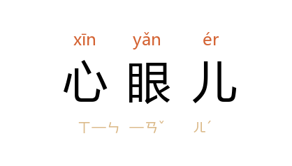 例如:「他心眼儿小」、「他心眼儿窄」。