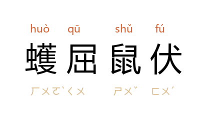 ⒈ 形容卑躬屈膝向人讨好的样子。 宋 孔平仲 《续世说·姦佞》:“宏楚(李宏楚 )请以中尉意召 注(郑注 )…… 元素(韦元素 )以为然,召之。 注 至,蠖屈鼠伏,佞词泉涌。