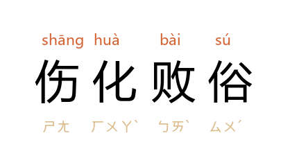 亦作“伤教败俗”。 明 马中锡 《辠言》:“今诸小道家浅陋无理,葬得善地,虽杀人巨盗,亦可获福;课得美占,虽弑父与君,亦无大害。伤教败俗,莫过於此。”
