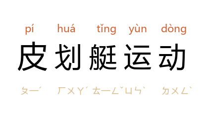 ⒈ 桨手乘坐特制小艇,由一个或几个桨手面向前进方向划进的划船运动。包括皮艇和划艇。皮艇是桨手坐在艇内使用一支两端桨叶互成约90°的桨,在艇的左右轮流划水,并以脚操纵舵,有单人艇、双人艇和四人艇三种。划艇则是桨手前腿成弓步,后腿跪着两手握一支像铲般的单面桨在艇的一侧划水,划艇无舵,全靠划桨动作控制,有单人艇、双人艇两种。皮划艇赛程均有500米、1000米、10000米三种。