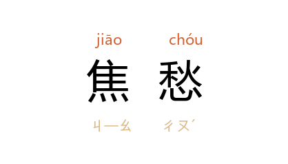 引晋 葛洪 《抱朴子·勤求》:“而空自焦愁,无益於事。”宋 司马光 《田家》诗:“皇心虽惻隐,蓬户或焦愁。为吏空多禄,无人能此忧。”郭沫若 《北伐途次》二七:“他们又有他们的焦愁和恐怖,这在事实上是促进了开城的原动力。”