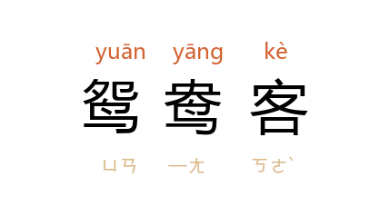 引元 秦简夫 《东堂老》第一折:“我那丈母与他一张独卓儿,你们都是鸳鸯客,把那卓子与我一字儿摆开着。”