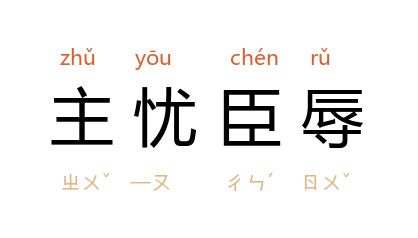 ⒈ 君王有忧患,臣子无法分忧解劳,是臣子的过失耻辱。常作为臣子向君王表示忠诚的话。