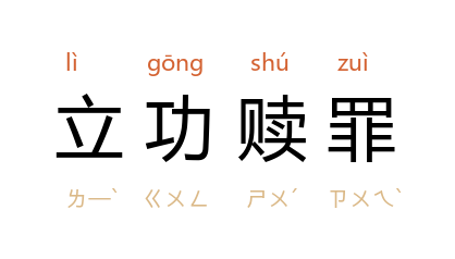 英perform meritorious services to atone for one’s crimes; store for one's crimes by performing meritorious service;
