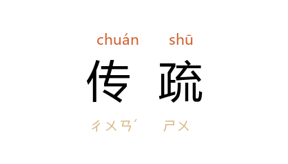 ⒈  指诠释经义的文字。传以释经,疏以推演传义。 清 陈奂 著有《诗毛氏传疏》。