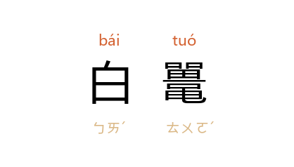 ⒈ 白色的鼍。 《晋书·五行志中》:“孙亮 初, 公安 有白鼉鸣。童謡曰:‘白鼉鸣,龟背平。