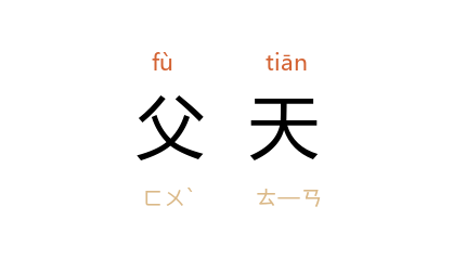⒈ 以天为父。《春秋感精符》:“人主与日月同明,四时合信,故父天母地,兄日姊月。”后因称父亲为“父天”。