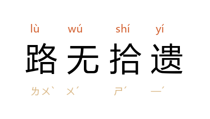 ⒈ 形容社会风气良好。参见「道不拾遗」条。明·徐元也作「道不拾遗」、「路不拾遗」。