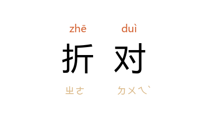 引《窦娥冤·第四折》:「若寻得这卖药的人来,和小人折对,死也无词。」《朱砂担·第三折》:「尊神,你使些神通,拏将他来折对咱。」
