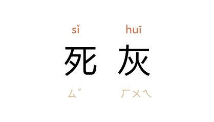 ⒈ 冷却不再燃烧的灰烬。比喻人颓丧或枯寂。