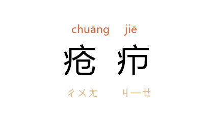 引唐 皮日休 《二游诗》:“枕兼石锋刃,榻共松疮癤。”萧红 《生死场》一:“榆树显然是生了疮疖,榆树带着偌大的疤痕。”