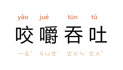 [ yǎo jué tūn tǔ ]