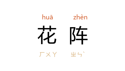 引唐 司空图 《力疾山下吴村看杏花》诗之六:“浮世荣枯总不知,且忧花阵被风欺。”元 白珽 《西湖赋》:“花阵排云,梭门秋千。”
