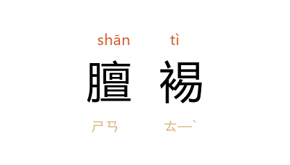 ⒈ 同“襢裼”。脱衣露体。 《说文·肉部》:“膻,肉膻也。膻、襢,今通作“袒”。