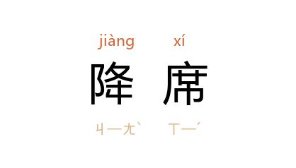 ⒈ 座席的西头。古代宾主相见,以西为尊,主东而宾西。《仪礼·乡饮酒礼》:“降席坐奠爵。”郑玄注:“降席,席西也。”后因以为尊贤礼士之典。