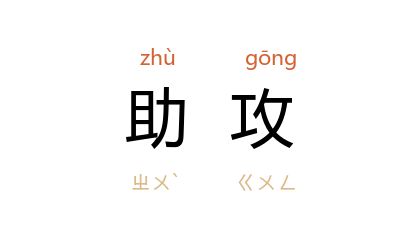 ⒈ 用部分兵力在次要方向上进攻,以配合主攻,称“助攻”。