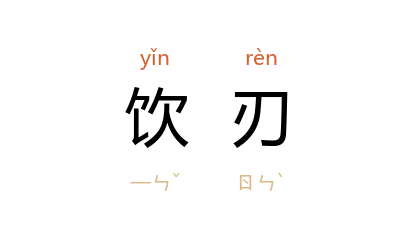 引清 葆光子 《物妖志·兽类·猿》:“良久,妇人出招之,乃持兵而入。见大白猿缚四足於牀头……刺其脐下,即饮刃,血射如注。”清 薛福成 《庸盦笔记·幽怪一·山东某生梦游地狱》:“凡杀一人者,必使饮刃一次,杀十人者,使饮刃十次。”柳亚子 《吊鉴湖秋女士》诗:“饮刃匆匆到 鉴湖,秋风秋雨血模糊。”