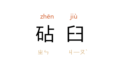 ⒈ 亦作“碪臼”。砧板和石臼。泛指捣碎用具。