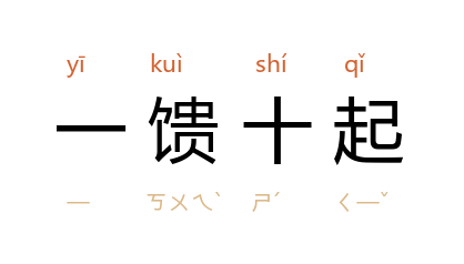 ⒈ 意谓一饭之顷亦多次起立。后因以“一馈十起”形容事务繁劳。意谓一饭之顷亦多次起立。后因以“一馈十起”形容事务繁劳。