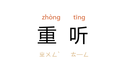 引汉 枚乘 《七发》:“虚中重听,恶闻人声。”《汉书·循吏传·黄霸》:“许丞 廉吏,虽老,尚能拜起送迎,正颇重听,何伤?”唐 白居易 《欢喜二偈》诗:“眼暗头旋耳重听,唯餘心口尚醒醒。”清 蒲松龄 《聊斋志异·司训》:“教官某,甚聋……人不知其重听。”