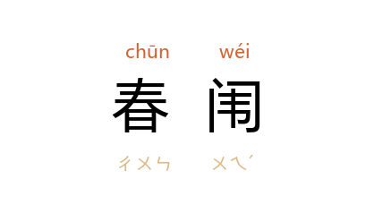 ⒈ 唐·宋礼部试士和明·清京城会试,均在春季举行,故称春闱。犹春试。犹春宫。太子居所。又称东宫。亦指代太子。犹春闺。