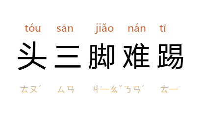 引浩然 《艳阳天》第九九章:“头三脚难踢。咱们得生着法儿帮她闯过来呀!”王英先 《枫香树》下卷第二六章:“野火坪 情况复杂,俗话说‘头三脚难踢’,要在几天之内把情况搞清楚,确实是艰巨的。”