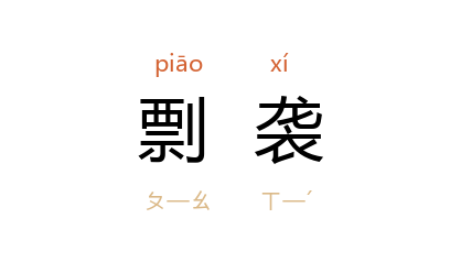 引宋 欧阳修 《绛守居园池》诗:“孰云己出不剽袭,句断欲学《盘庚》书。”明 方孝孺 《与赵伯钦书》之一:“故圣贤文辞非有大过於今人,其所以不可及者,造道深而自得者远,恒言卑论亦可为后世法,非剽袭以为説者之浅也。”闻一多 《致梁实秋》:“民国大学学生课艺中竟有全段剽袭者。”