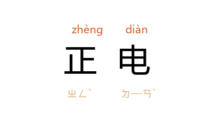 ⒈ 以质子为基本单位的电。当物体产生缺少电子的效应时的现象。