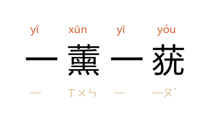 ⒈ 薰,香草。莸,臭草。一薰一莸指把香草、臭草相混合,积放十年后则香气尽而臭气犹存。语出比喻善易消失,恶难灭除,善容易被恶所遮蔽。唐·权德舆〈唐赠兵部尚书宣公陆贽翰苑集序〉:「一薰一莸,善齐不能同其器;方凿圆枘,良工无以措巧心。」