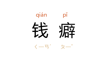 引《晋书·杜预传》:“时 王济 解相马,又甚爱之,而 和嶠 颇聚敛, 预 常称‘ 济 有马癖, 嶠 有钱癖’。”宋 孙光宪 《北梦琐言》卷四:“虽各有所美,而非近利,与夫牙筹、金埒、钱癖、穀堆不亦远乎!”