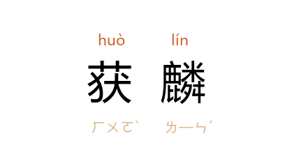 ⒈ 指春秋·鲁哀公十四年猎获麒麟事。相传孔子作《春秋》至此而辍笔。指春秋末期。指汉武帝·太始二年捕获白麟事。喻指著作的绝笔。