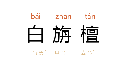 引南朝 宋 刘义庆 《世说新语·文学》:“白旃檀非不馥,焉能逆风。”唐 白居易 《赠韦处士六年夏大热旱》诗:“既无白旃檀,何以除热恼?”唐 寒山 《诗》之九七:“有人把椿树,唤作白旃檀。”明 李时珍 《本草纲目·木一·檀香》:“白旃檀,气味辛温,无毒。”