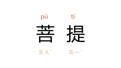 ⒈ 佛教名词。梵文Bodhi的音译。意译“觉”、“智”、“道”等。佛教用以指豁然彻悟的境界,又指觉悟的智慧和觉悟的途径。