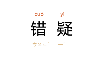 《红楼梦·第二八回》:「林黛玉只因昨夜晴雯不开门一事,错疑在宝玉身上。」