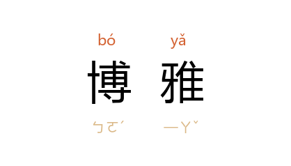 ⒉ 书名。魏张揖所撰之广雅,因避隋炀帝杨广之讳,故改称为「博雅」。