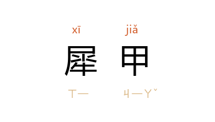 ⒈ 犀牛皮制的铠甲。犀皮不常有,或用牛皮,亦称犀甲。