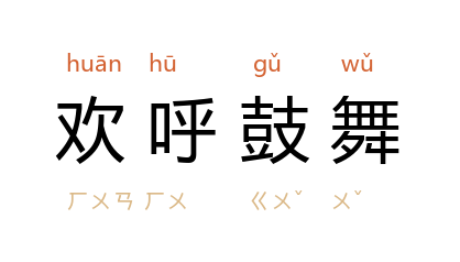 引宋 苏轼 《缴进免五穀力胜税钱议札子》:“去岁扈从南郊,亲见百姓父老,瞻望圣颜,欢呼鼓舞,或至感泣。”元 张光祖 《言行龟鉴·民政》:“诸州之民,欢呼鼓舞,始知有父子生聚之乐。”