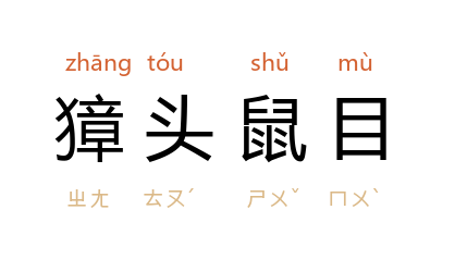 《儒林外史·第三回》:「见那些童生纷纷进来:也有小的,也有老的,仪表端正的,獐头鼠目的。」