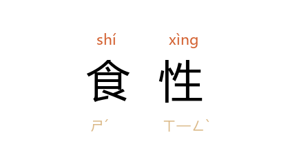 ⒈ 动物饮食的习性。以动物为食,称为「肉食性」,如狮子、老虎;以植物为食,称为「草食性」,如羊、象;以动植物为食,称为「杂食性」,如人。
