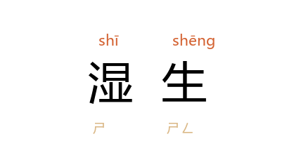 ⒈ 亦作“溼生”。佛教语。众生形成的四种形态之一。谓从湿而生,如腐肉中生蚤、虱之类。参见“四生”。