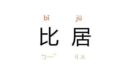 ⒈ 邻居。 《三国志·魏志·胡质传》:“士 卢显 为人所杀, 质 曰:‘此士无讎而有少妻,所以死乎!’悉见其比居年少,书吏 李若 见问而色动,遂穷詰情状。
