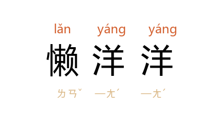 引巴金 《秋》一:“‘是,我去就是了。’ 觉新 懒洋洋地说。”冰心 《三年》:“湖柳,被水熏的被风吹的也醉了,懒洋洋的不时刮起几丝长条来,又困倦的垂下了。”魏巍 《东方》第三部第十一章:“周仆 哼了一声,拾起筷子懒洋洋地吃着。”