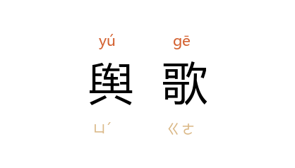 引南朝 梁 江淹 《为萧骠骑让封第二表》:“鐫金刻石,既不可詮;舆歌里诵,其谓臣何?”胡之骥 汇注:“舆歌,舆人之歌也。”唐 王勃 《上绛州上官司马书》:“霸略近发於舆歌,皇图不隔於芻议。”