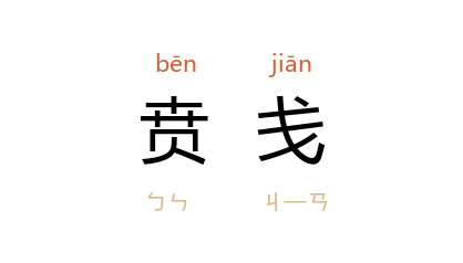 ⒈ 后用“賁戔”形容彩帛等装饰盛多。