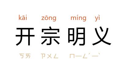 引《孝经·开宗明义》 宋 邢昺 题解:“开,张也;宗,本也;明,显也;义,理也。言此章开张一经之宗本,显明五孝之义理,故曰开宗明义章也。”