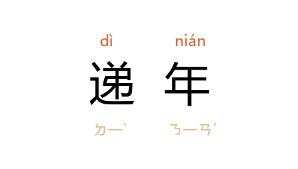 引宋 洪迈 《夷坚丙志·朱氏蚕异》:“湖州 村落 朱家顿 民 朱佛大 者,递年以蚕桑为业,常日事佛甚谨,故以得名。”《西游记》第七五回:“我这洞里,递年家没个苍蝇,但是有苍蝇进来,就是 孙行者。”